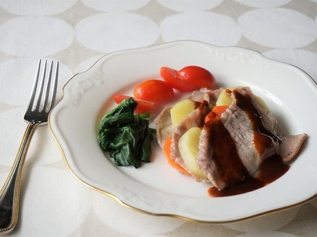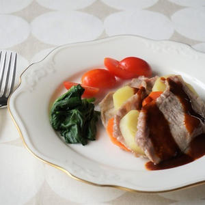 ナイフとフォークを持って、オシャレなディナーにオススメなポークソテーです。コクのある赤ワインソースがちょっと大人な食卓を演出します♪切るだけの簡単サラダとほろ苦い菜の花のポタージュを添えてどうぞ。ホワイトデーディナーにもおススメ☆