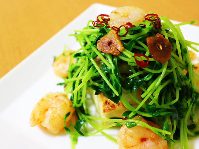 サッと炒めがポイント!海老と豆苗のペペロンチーノ風
