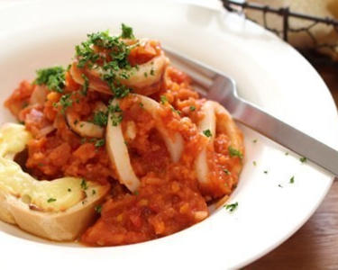 イカのトマト煮 お麩のバケット添え