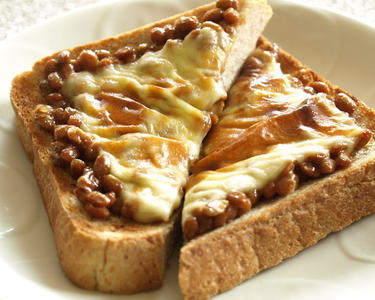 パンに納豆、チーズをのせ、チーズにき目がつくまでトースター等で焼きます。