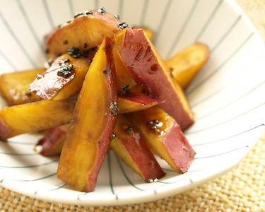 食物繊維、ビタミンCを多く含むさつまいもを、油で揚げない簡単でヘルシーな大学いもに!