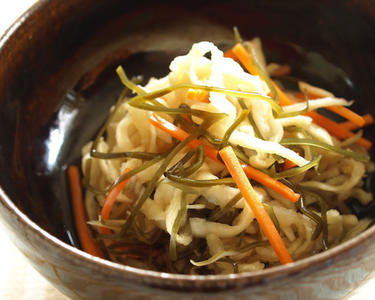 刻み昆布は商品によっては塩分の強いものがありますので、切干大根と和える前に味見をして量を調節してください。輪切り唐辛子を少々加えるのもおすすめです。