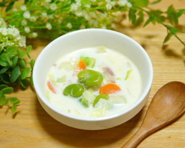 鍋に水と調味料を入れ火にかけ、沸いたら1を加え、塩・コショウで味を調え、野菜に火が通ったら火を止める。