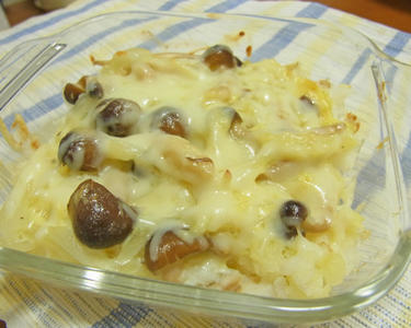1の鱈とじゃがいもを耐熱皿に入れ、上に豆乳ソース、とろけるチーズを乗せチーズがとろけるまでオーブンかトースターで焼く。