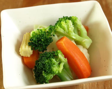冷凍温野菜ミックスは電子レンジなどで蒸して、熱いうちに好みのノンオイルドレッシングで軽く和えます。
