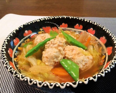 肉団子はスプーンですくいながらスープの中に落とすと、作りやすいです。野菜から水分がでるので、野菜を煮るときの水分は少な目にしてください。