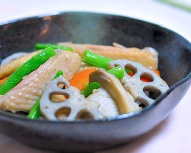 コラーゲンたっぷり、鶏の手羽中を使った煮物です。