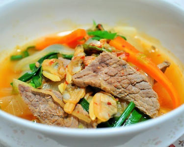 牛もも肉、玉ねぎ、人参、にらは食べやすい大きさに切る。