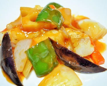 片栗粉でとろみをつけ、器に盛り付けて完成。
