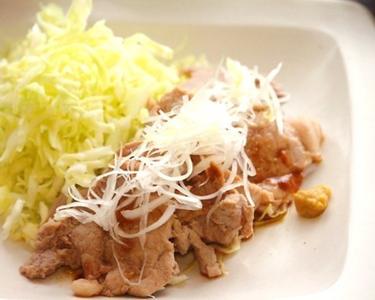 豚ヒレ肉は薄切りにして、★のタレをよく揉みこんでおく。長ネギは白髪ねぎにする。お皿にキャベツを盛っておく。
