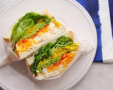 見た目も味もGOOD!カラフルな野菜を使って、断面カラフルなサンドイッチの出来上がり☆
