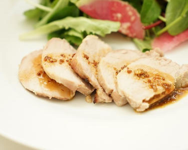 低脂肪なヒレ肉を使ってボリューム満点なメイン料理に!ハニーマスタードソースとの相性もぴったりですよ。