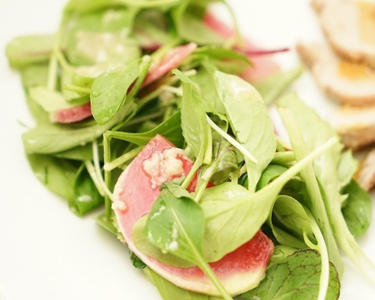 ソースの材料、2の肉汁を混ぜ合わせ、マスタードはちみつソースを作る。