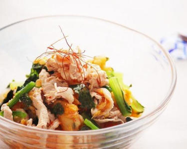 沸騰したお湯で豚肉をサッとゆでて氷水で冷やし、①と和える。