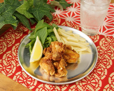 レタスとともに唐揚げを盛り付ける。