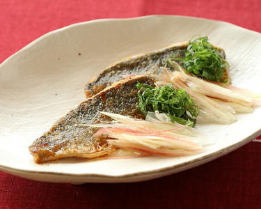 ソテーしたアジをさっぱりとした味に味付けしました。みょうがや大葉を添えれば、いつもと少し違うアジ料理に変身します。アジの特に血合い部分には鉄分を多く含みますので、一緒にとっていきましょう。