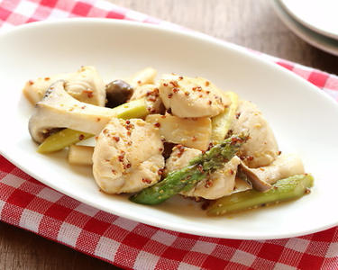 アスパラガスは、新陳代謝を促すアスパラギン酸を多く含みます。その他、抗酸化作用のあるβ-カロテンやビタミンB1、B2など代謝に関係する栄養素も豊富です。マスタードを使った炒め物は少し酸味があってさっぱりといただけますよ。