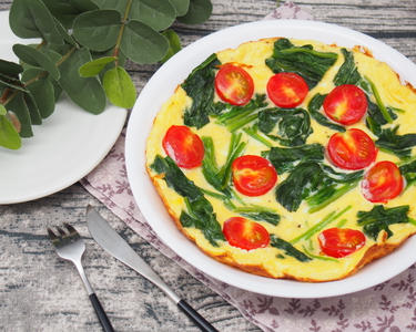 1をオリーブ油で炒め、火が通ったら溶いた玉子を流し入れて形を整え、蓋をして蒸し焼きにする。