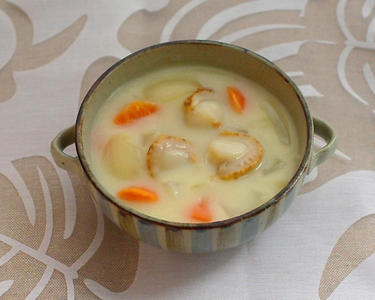 冬が旬のホタテは、旨味成分がたっぷり入っています。乳製品を使わず、豆乳を使っているので余分な脂肪をカットできますよ。