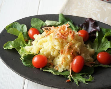 クレソンとミニトマトを盛った皿に③をのせ、バター液を身にかける。レモン塩の皮を刻み、のせる。