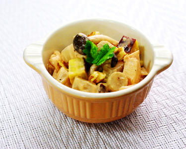 高たんぱくで低脂肪なホタテは、タウリンや亜鉛などのミネラルを豊富に含みダイエットにもおすすめな食材です。キウイはバナナの2倍程の食物繊維を含み、ビタミンC、ビタミンE、カリウムが豊富な栄養価の高い果物です。食欲があまりないときでも、さっぱりと食べられる栄養価の高い1品です。