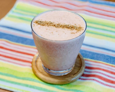 ミキサーに材料を全て入れ、なめらかになるまで撹拌しコップに注ぐ。