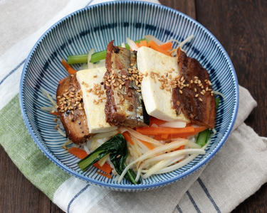 フライパンに油をひき、豆腐に焼き色が付くまで両面焼き、取り出す。