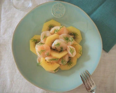 マリネドレッシングを混ぜ合わせておく。生サーモンは平らな皿に並べ、ドレッシング1/4を上からかけてマリネし、ラップをかけ冷蔵庫で冷やしておく。