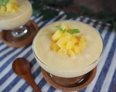 アガーはゼラチンに比べ、調理後でも常温で溶けにくい性質があります。そのため温かいシロップをかけても、溶けずに食べることができます。冷蔵庫で冷やしても、もちろん美味しいです。