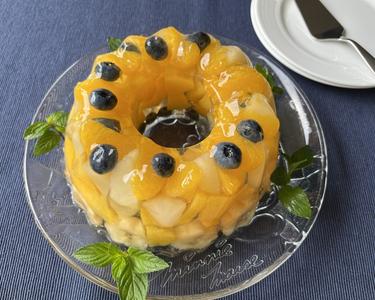 容器にみかんの2/3量を入れて2をそそぐ。冷蔵庫で冷やし固めたら皿にあけ、上に残りのみかんを飾る。