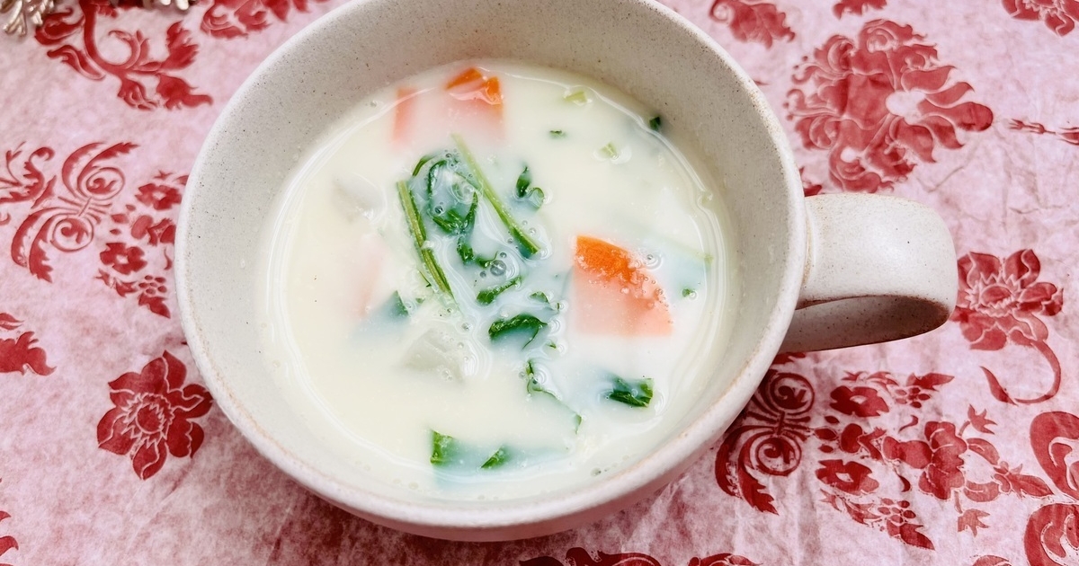 豆乳の旨味を活かした低カロリーのスープです。脂質と塩分を控えても満足感があり、カリウムの力でむくみの予防も期待できます。糖尿病や高血圧に気を付けたい方にもおすすめです。