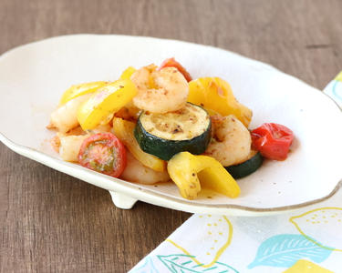 エビと夏野菜の柚子こしょう炒め