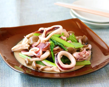 イカときのこのめんつゆバター炒め