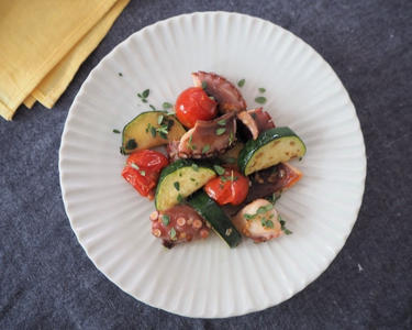タコとズッキーニのガーリックハーブ炒め