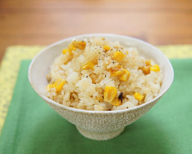 焼き目が香ばしい!コーン缶と玄米の炊き込みご飯